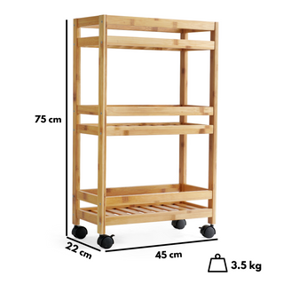 • Maximize storage and minimize clutter with our Bamboo Slim Trolley Cart - perfect for tight spots in your kitchen, bathroom, or laundry. Smooth-rolling wheels and a sturdy, breathable design make organizing easy for every corner of your home.